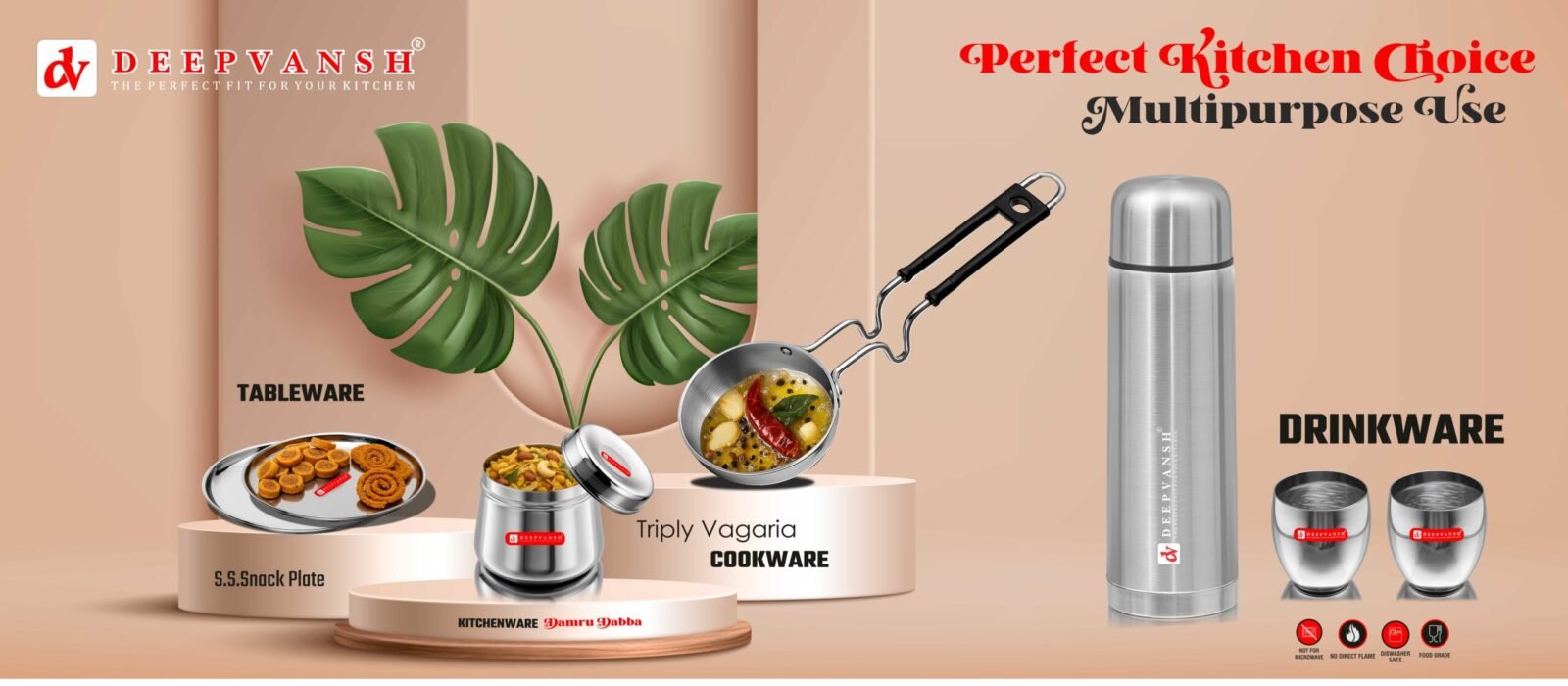 Deepvansh Cookware is an Indian kitchenware brand offering durable, food-grade stainless steel, cast iron, and aluminium cookware designed for modern and traditional cooking.
